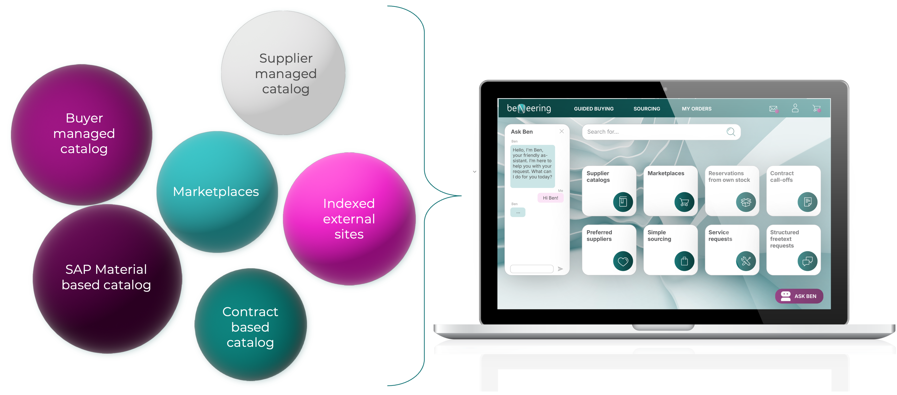 - Catalog data from various sources is indexed by search engine and is searchable within the BeNeering Guided Buying